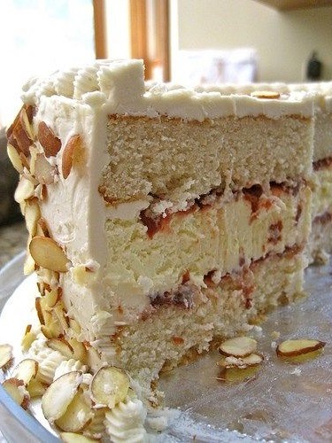 Weißer Mandelkuchen mit Kirsch-Käse-Füllung