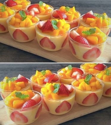 Alle Zutaten in einem Glas schichten und gekühlt servieren.
