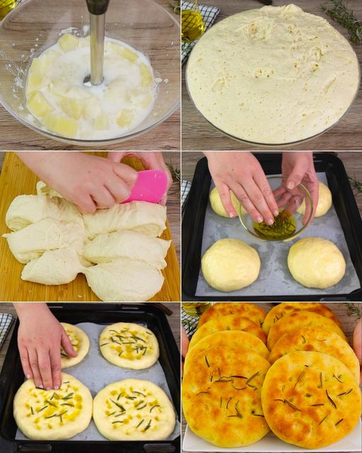 ZUTATENRosmarin100 ml (1/2 Tasse) natives Olivenöl extra500g Salzkartoffeln150 ml (1/2 Tasse) Milch4g (1 TL) Zucker7 g (1 1/2 TL) Trockenhefe630 g (5 Tassen) MehlGrobes Salz