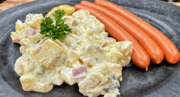 Tipp: Wenn der Kartoffelsalat zu trocken erscheint, einfach weiteren Gewürzgurkensud hinzufügen.