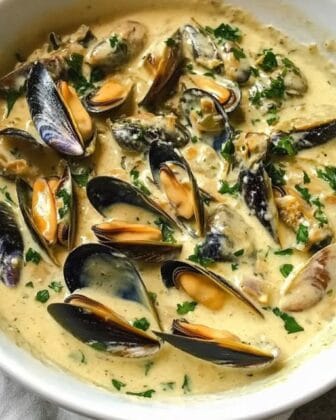 Genießen Sie dieses cremige und aromatische Muschelgericht!