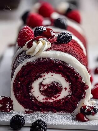 **Können Sie diesem unwiderstehlichen Red Velvet Kuchen-Rolle widerstehen?**