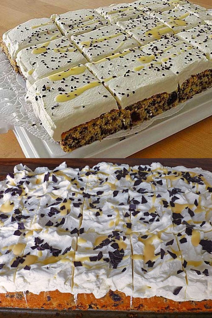 Die Sahne mit Vanillezucker und Sahnesteif steif schlagen. Den Schmand vorsichtig unterheben. Die Sahne-Schmand-Masse auf den Kuchen geben und glatt streichen. Mit Eierlikör als Dekoration besprenkeln und evtl. Schokodekor anbringen. Den Kuchen bis zum Verzehr mindestens 1 Stunde kalt stellen.