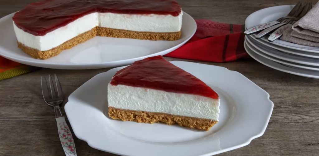 Der Käsekuchen mit Marmelade ist ein Dessert frisch und lecker, die ohne Kochen Variante des typischen amerikanischen Käsekuchens. Es besteht aus einer Basis aus Keksen und geschmolzener Butter und einer weißen und üppigen Füllung aus Frischkäse, Schlagsahne, Puderzucker und Speisegelatine. Die sehr einfache Zubereitung ohne Backofen ähnelt der des klassischen Käsekuchens: Aus Keksen wird ein Boden hergestellt, mit Butter vermengt und verdichtet und dann auf der Sahne verteilt Käse.