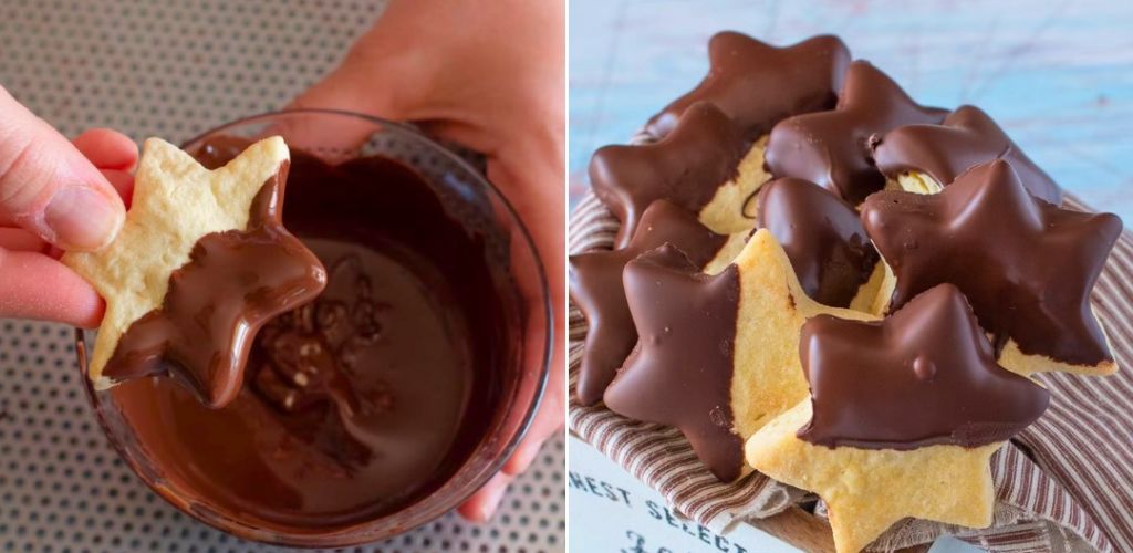 Hier erfahren Sie Schritt für Schritt, wie Sie Mürbeteigkekse zubereiten und wie Sie sie mit geschmolzener Schokolade überziehen können.