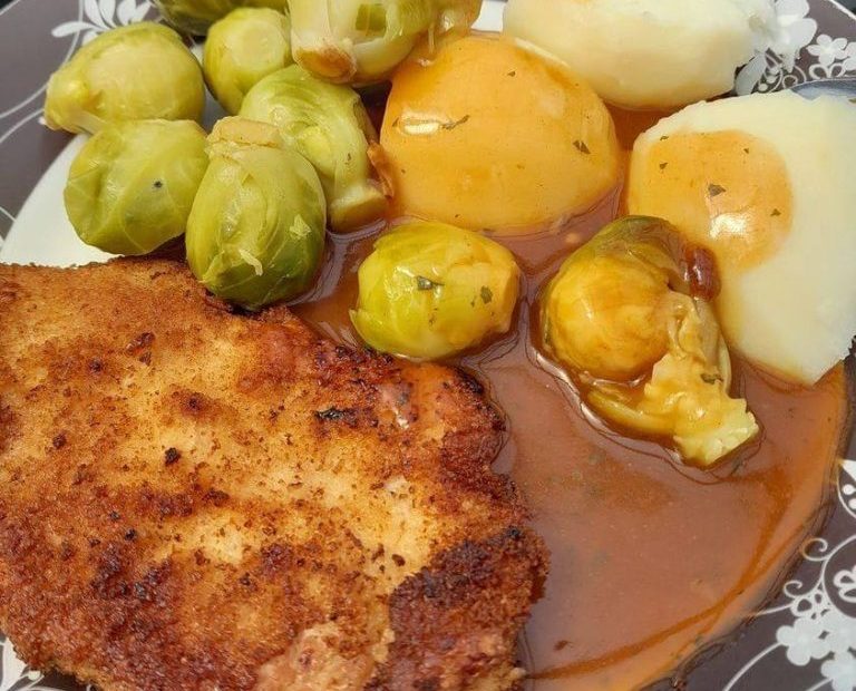 Schnitzel: Schnitzel aus der Oberschale ( ca. 550 g ) 3 grobes Meersalz aus der Mühle etwas bunter Pfeffer aus der Mühle etwas Mehl 100… Weiterlesen »Schnitzel mit Rosenkohl