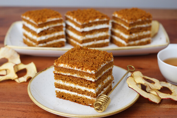 Fantastische Marlenka Honigtorte mit Saurer-Sahne-Creme – ohne mühsames Ausrollen