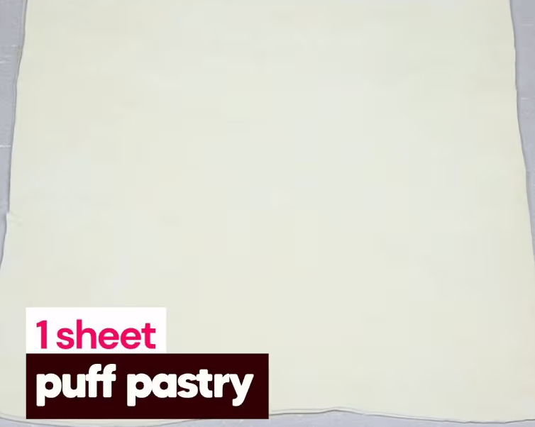 Before using your store-bought puff pastry, make sure it’s properly thawed. It will take about 30 minutes to thaw on the counter, or you can thaw it in the fridge overnight.