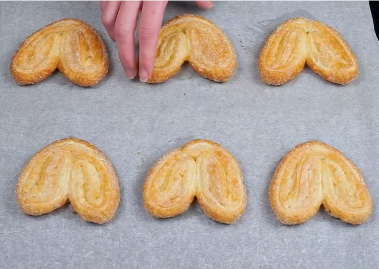 Place the palmiers on a baking sheet, cut-side up. Bake for about 25 minutes, then let it cool, and enjoy!