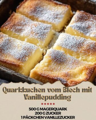 Quarkkuchen vom Blech mit Vanillepudding