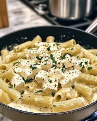 Rigatoni in zarter Feta-Sahnesauce mit frischen Kräutern 🌿🧀