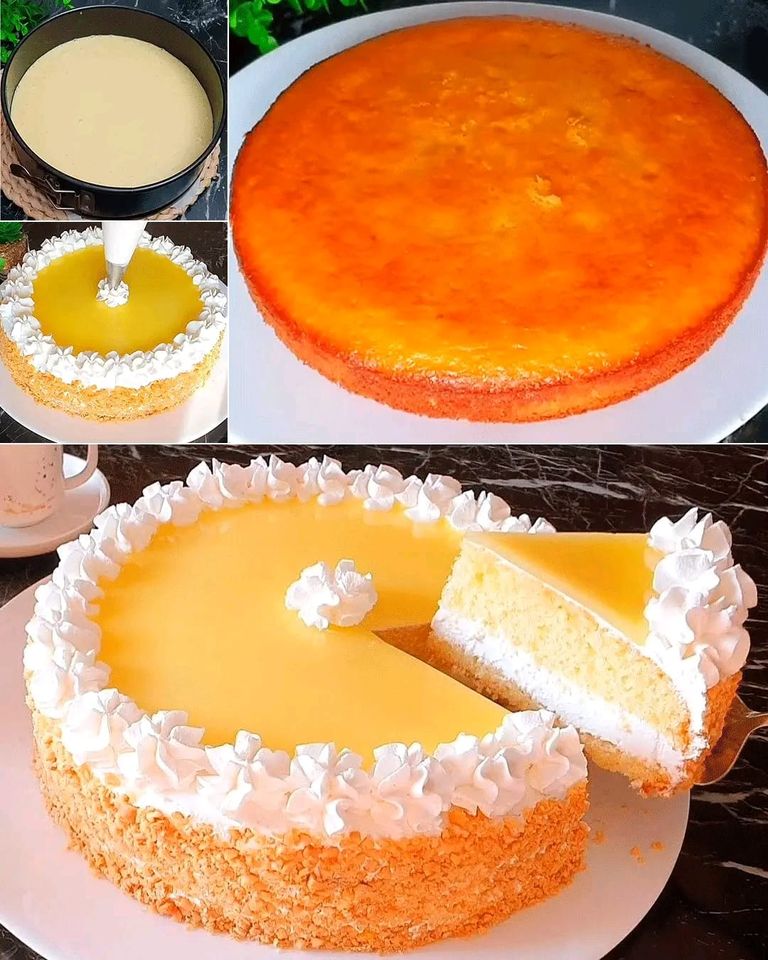 Den Kuchen in drei Schichten schneiden. Die erste mit etwas Sirup bestreichen und mit der Hälfte der Sahne bestreichen. Das zweite Kuchenblatt darauf legen und ebenfalls mit Sirup bestreichen.
