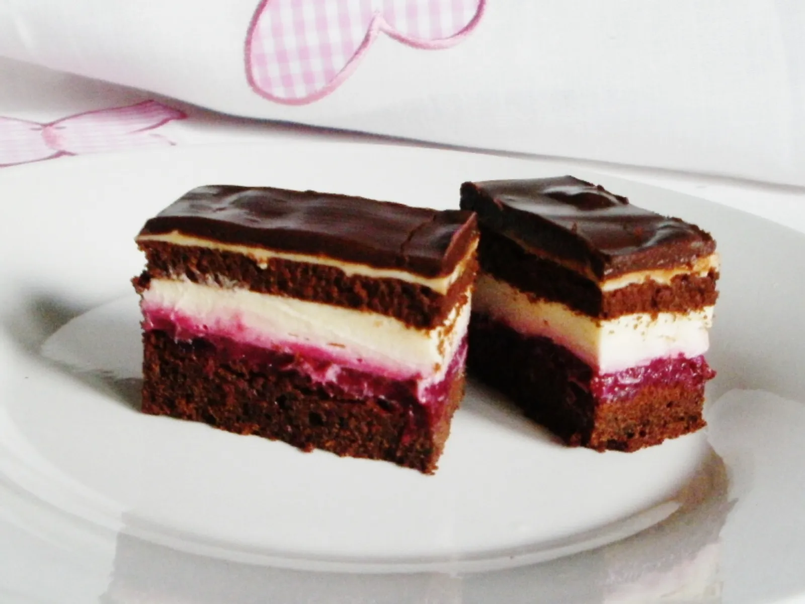 Die Creme auf der Waldfruchtcreme verteilen, dann den zweiten Teil des Kekses auflegen und dünn mit der Valia-Creme bestreichen.