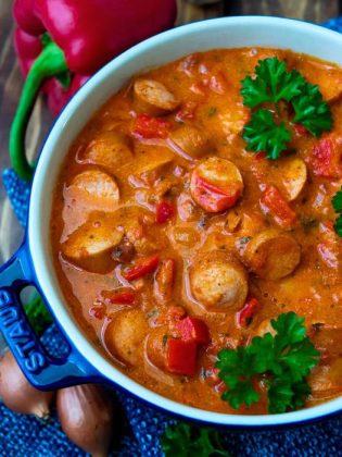 Vegetarische Variante: Ersetze die Würstchen durch vegetarische Würstchen und die Fleischbrühe durch Gemüsebrühe.
