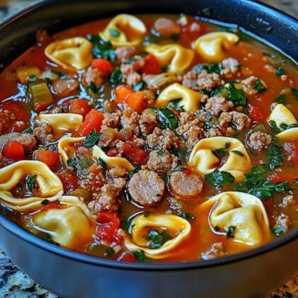 Diese Wurst-Tortellini-Suppe ist die perfekte Kombination aus cremig, herzhaft und leicht würzig – ideal für ein gemütliches Abendessen!